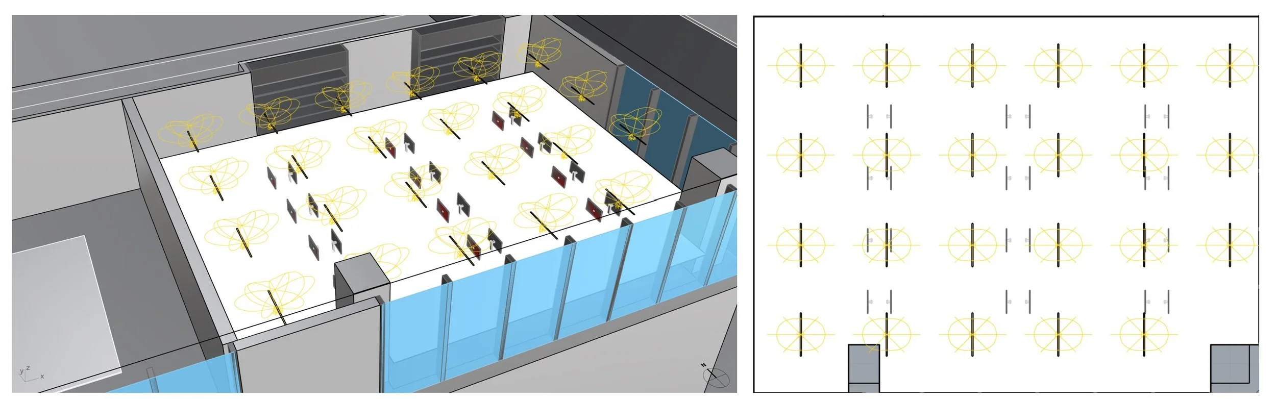Select a representative space in your building and place the luminaires so that at least 300lux/150lux are maintained across all working/circulation areas (Figure 1).